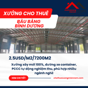XƯỞNG BÀU BÀNG CHO THUÊ, DIỆN TÍCH LỚN, XƯỞNG MỚI 100%, GIÁ RẺ